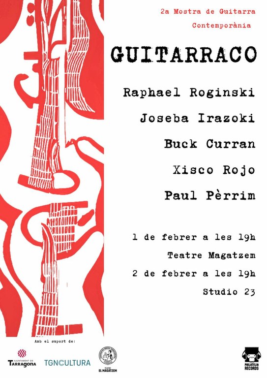 La guitarra como medio de expresión y el continuo hechizo de las seis cuerdas, que abarca desde el tradicionalismo hasta la experimentación. Con esta idea en mente, el sello discográfico tarraconense Philatelia Records presenta una muestra de guitarra contemporánea a cargo de cinco guitarristas de primer nivel internacional en la escena actual: Raphael Roginski, Joseba Irazoki, Buck Curran, Xisco Rojo y Paul Pèrrim.